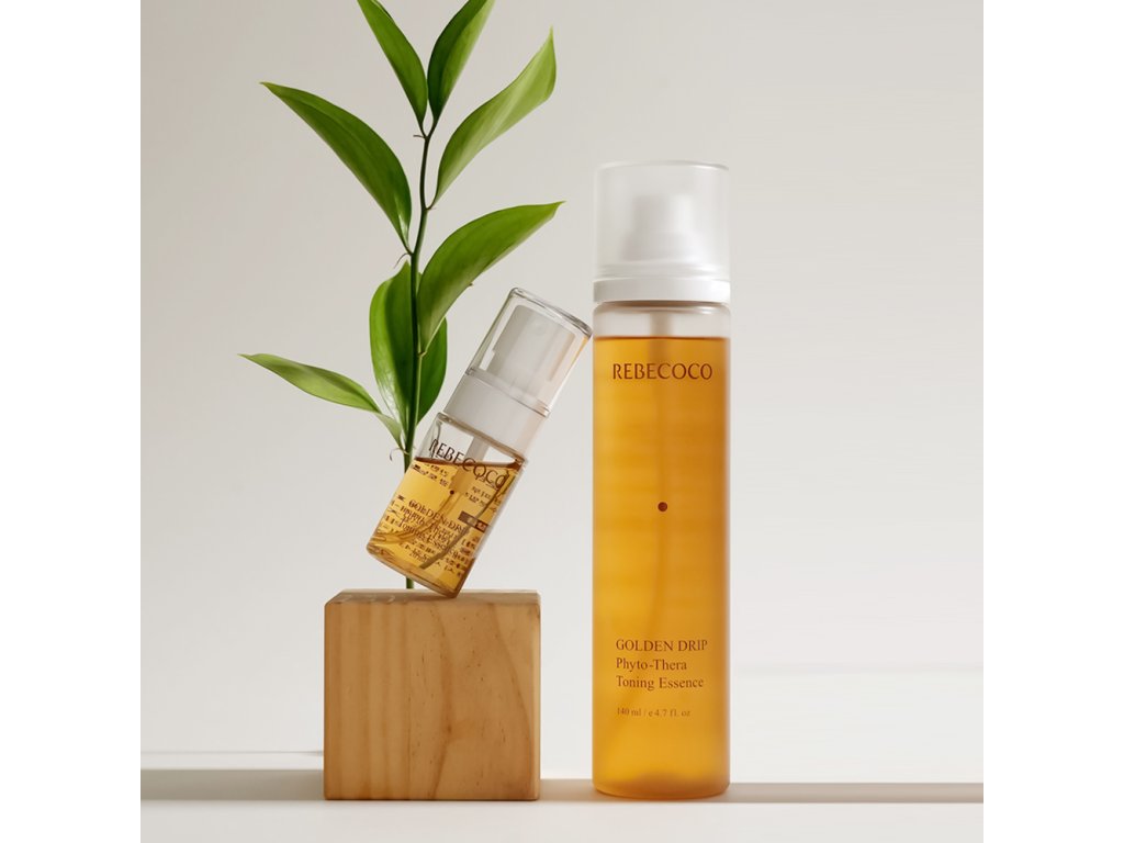 Rebecoco Golden Drip Phyto-Thera Toning Essence je jemná pleťová esence, která v sobě spojuje účinky toneru a hydratační péče. Pomáhá pleti obnovit rovnováhu po čištění, intenzivně ji hydratuje, zklidňuje a připravuje na další kroky péče. Díky kombinaci fyto-aktivních látek a zlatého komplexu podporuje zdravý vzhled pleti a zlepšuje její celkovou kondici.