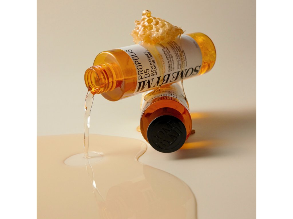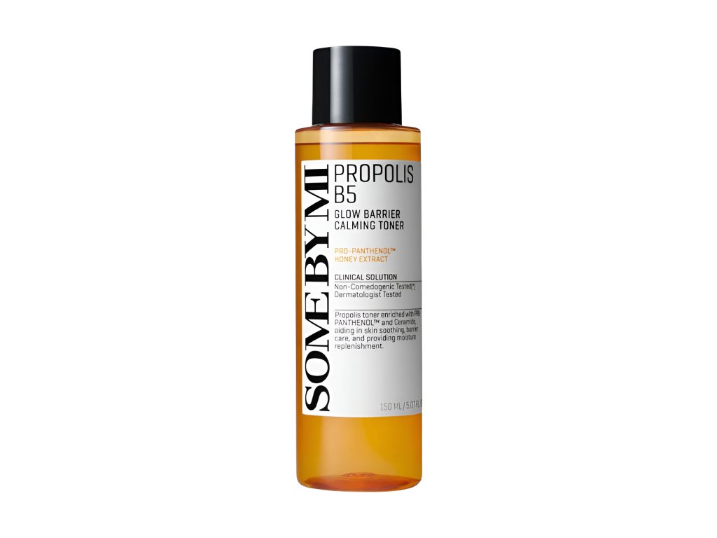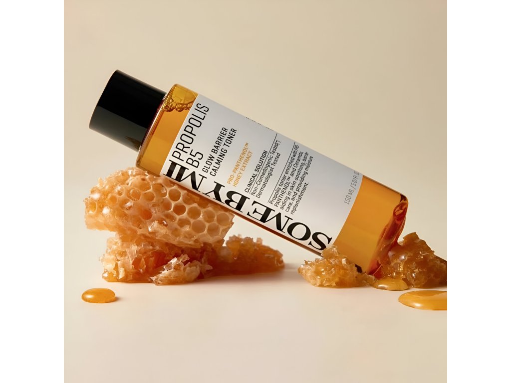 Some By Mi Propolis B5 Glow Barrier Calming Toner je tonikum na bázi extraktu z propolisu, medu, ceramidu a panthenolu má zklidňující a zpevňující účinky, působí proti zánětům a zarudnutí, pomáhá obnovit a posílit ochrannou vrstvu a dodává pleti zdravý lesk. Jedinečná kombinace propolisu a panthenolu a dalších účinných látek dodá pokožce hedvábný a zdravý lesk, pomůže ji vyživit užitečnými látkami a hydratovat.
