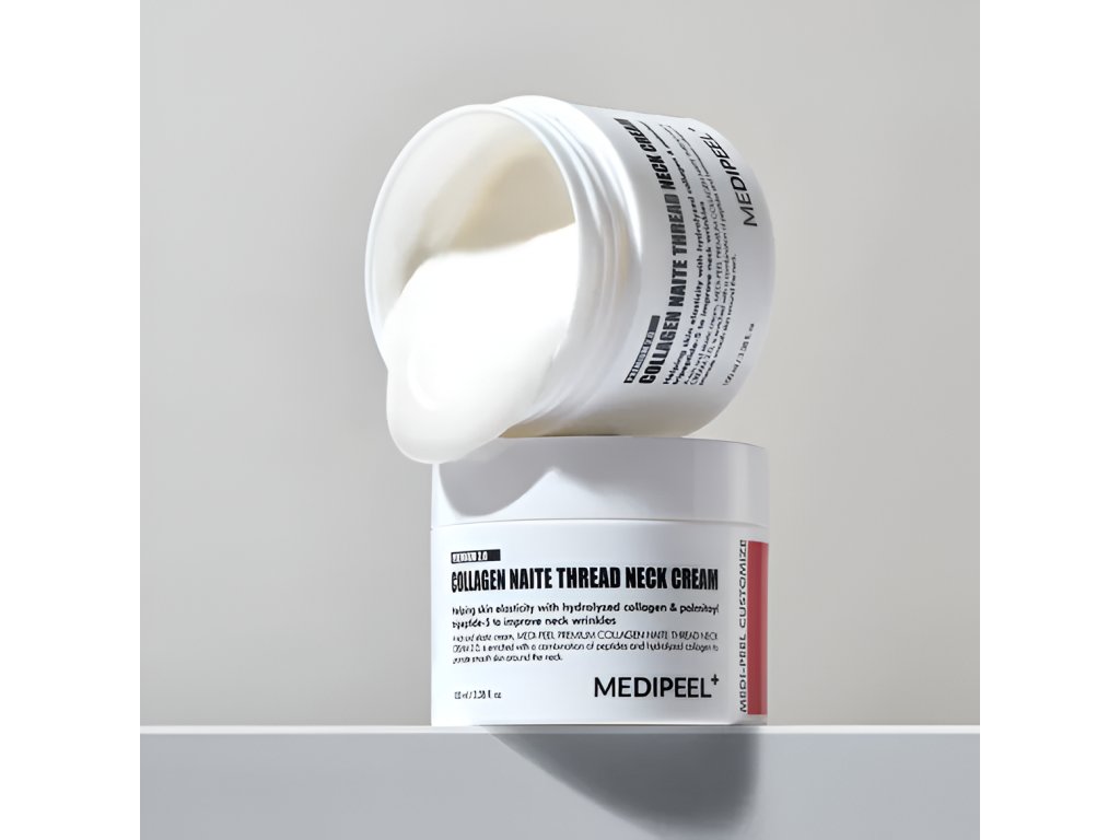 Stahující krém na krk s peptidovým komplexem Medi-Peel Naite Thread Neck Cream má výrazný liftingový efekt, vyhlazuje a redukuje hloubku vrásek, pomáhá v boji proti kožním vráskám a Venušiným prstencům.